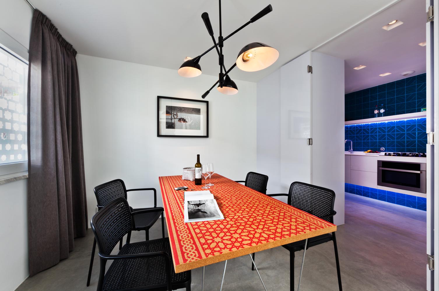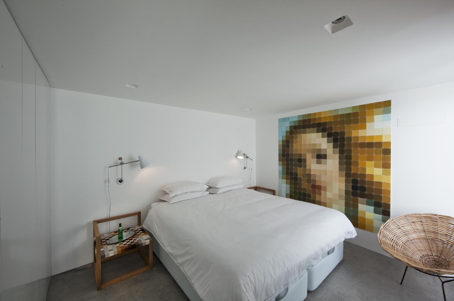 Designed by architects from Studio Arte, Casa Xonar is a house that unfolds as we move from space to space. The light box lounge is stunning in its fresh combination of the vintage and the modern. Portuguese design pieces and selected art works take us on a journey to a modern day Casablanca. The lounge bedroom delivers simple comfort with its luxurious bed and pixel art. Opening on to the mini courtyard its water cascade mixes with neighbourhood sounds to refresh and relax on a warm evening. Then upstairs to the boudoir-bedroom and another space to explore, this one takes us back to a romantic era, here our story continues through the looking glass and the film library with a selection of indie films to enjoy and educate. From here we can explore two terraces; one private, shaded and enclosed with the familiar Arabic designs that cast such fantastic shadows, the other is the outdoor lounge. With the interior design by Janneke de Bruijn at Lusco Fusco, the selected furniture at Xonar is fabulous; we find comfort and dynamic design present in every division. This design labyrinth continues on this floor as we discover the master bathroom with rain showers and 1940’s inspired artwork.
